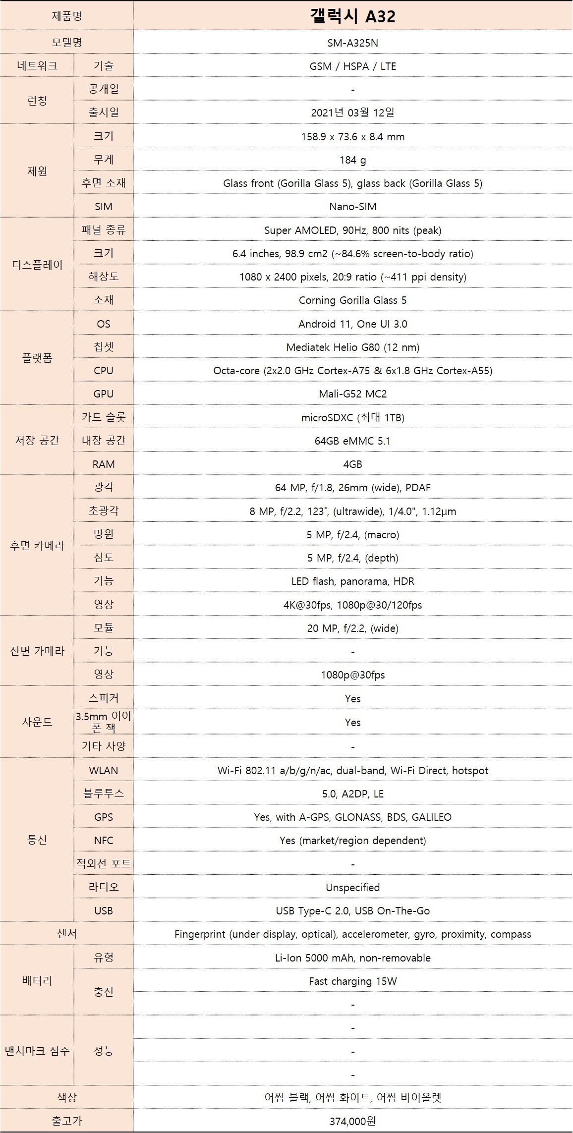 삼성전자, '갤럭시 A32' 12일 출시 - Samsung Newsroom Korea from img.kr.news.samsung.com 72.900 kd starting 3.000 kd monthly. The chipset is a bit slow for heavy tasks but that's to be expected from a device in this price range. Jun 26, 2021 · www.incheonilbo.com 전반적으로 갤럭시 노트20의 모양과 비슷하고, 갤럭시 a52와 똑같이 디자인되었다. Jul 17, 2021 · 두 모델은 같은 갤럭시 a32이지만 lte와, 5g로 따로 출시되어 내구도, 성능 등 다수의 차이점이 존재한다. Apr 08, 2021 · 갤럭시 a12. 핸드폰마다 스펙과 가격이 조금씩 다르기 때문에 가지고 왔습니다.벌써 3일째 쓰고 있는데 영상에서 말한 첫인상에서 별로 바뀐 게 없어요.의외로.